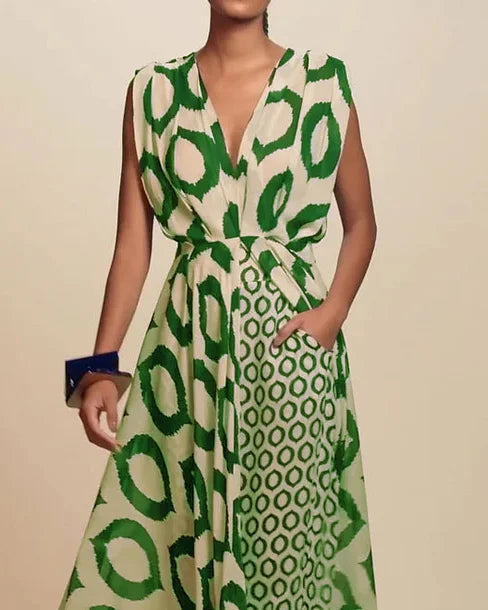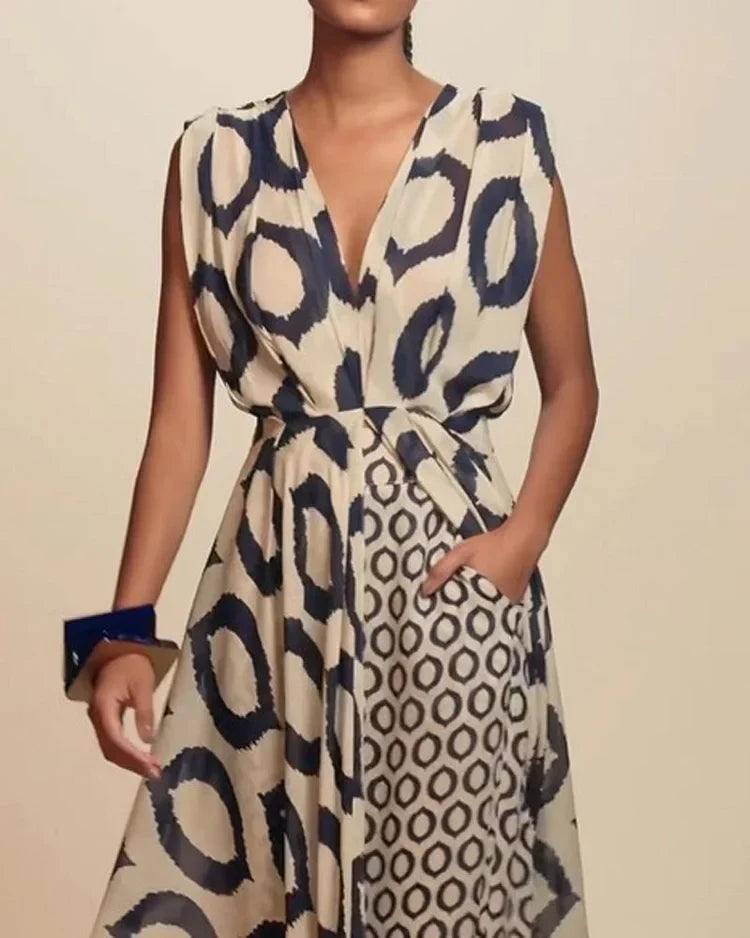 Completo Due Pezzi Casual Senza Maniche a Fantasia con Vita Sottolineata